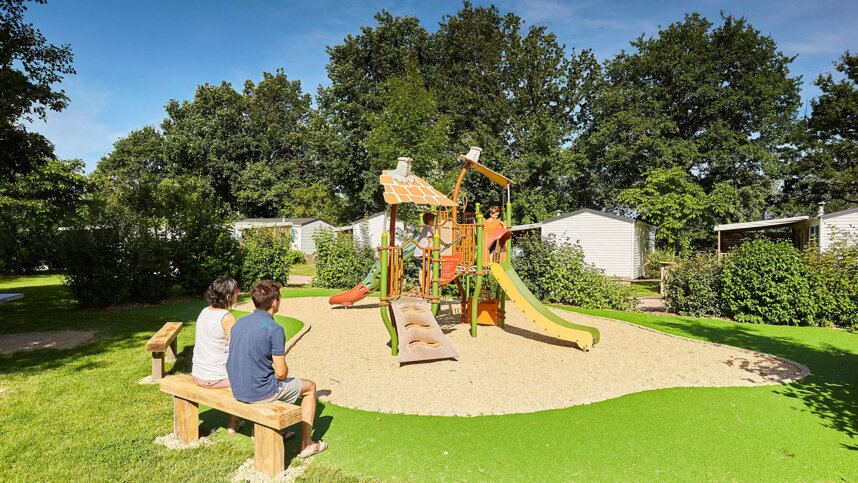 You will find an outdoor covered swimming pool directly behind the restaurant on the campsite. Also on-site, there is a snack bar, a grocery store, a games room (billiards, table football, molkky, shuffleboard, board games, books), multi-sports ground, a petanque ground, ping-pong tables, a mini-farm (sheep, alpaca and chickens) and a brand new playground for the younger children that has two trampolines.