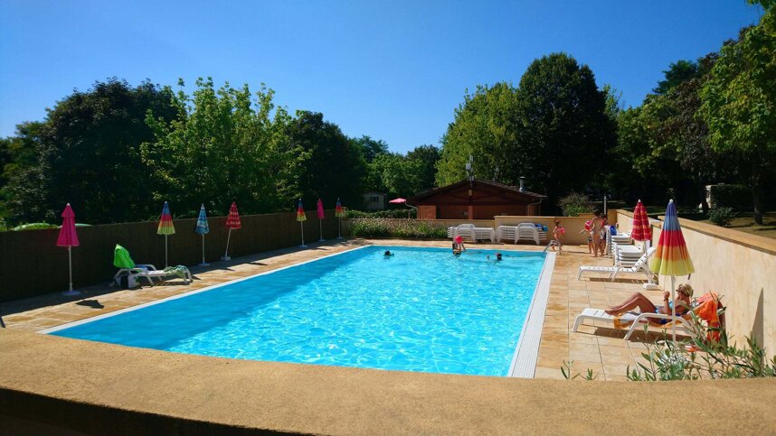Le Temps de Vivre is situated in the centre of the Périgord Noir, in the countryside and lies about 250 m. above sea level. The area of the campsite covers about 6.5 hectares in total, with 1.5 acres in use at present. It is a small, friendly, family run site with 50 pitches, 28 of which are for touring and 22 for mobile homes available to rent. The pitches are wide and terraces separate some of them. All have 10A Europlug, and you will find a variety of trees and bushes often as a natural separation. This is a delightful and peaceful rural site.