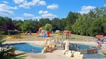 Sanitary facilities with preset showers, open washbasins and accessible facilities. Laundry with washing machines and dryer. Motorhome services. Shop and fresh bread in reception. Bar and takeaway with terrace. Heated outdoor swimming pool. Play area. Grassed area for outdoor games. Games room with TV, billiards, table football, table tennis and darts. Children’s club (4-8 yrs, July/Aug). Musical evenings once a week (July/Aug). Outside fitness machines. No electric barbecues. WiFi throughout (free).