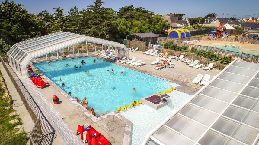 Three modern sanitary blocks, each with good accessible facilities and a baby room. Laundry facilities. Motorhome services. Shop with essentials. Bar and snacks. Daily breakfast delivery, Bakery, Heated swimming and paddling pools. Play area. Bouncy castle, Table tennis, Multi sport pitch, Games room with stage. Activities and entertainment. Kids club, Creative crafts, Welcome drink, Communal barbecue. Bicycle hire. Mountain bike hire, Surfboard hire, Kayak hire, Sailing-boat hire, Free WiFi throughout.