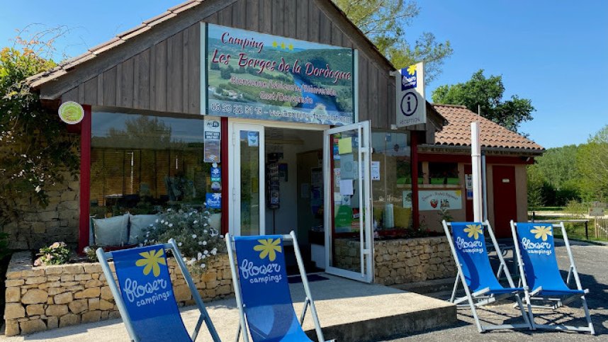 Flower Camping Trémolat Les Berges de la Dordogne is on the banks of the Dordogne River near the village of Trémola, between Bergerac and Sarlat. The site has 100 pitches, of which 65 are for touring units and have a 10-amp hook-up point, five are seasonal, and 30 mobile homes are available to hire. Pitches are well-shaded by mature trees, and some are separated by hedging, giving privacy.