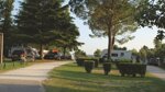 Fornella Camping is one of the few campsites on Lake Garda still surrounded by farmed olive trees and retaining a true country atmosphere. Parts of the crisp, clean site have great lake views, others a backdrop of mountains and attractive countryside. The 266 touring pitches are on flat grass, terraced where necessary and most have good shade, all with 6/10A electricity; 101 have water and a drain as well. The remaining pitches are used for mobile homes to rent. The staff speak excellent English and Dutch. A superb lagoon pool complex is here, along with a more traditional pool. These are supplemented by a pleasant bar, and a restaurant with terrace overlooking the lakeside.