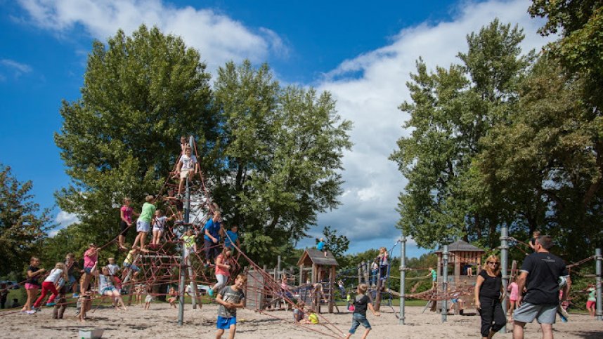 Seven top quality, heated toilet buildings have free hot water and very smart fittings. Some have special rooms for children, babies and families. Accessible facilities, Excellent dog shower. Family wash cabins to rent. Motorhome services. Gas supplies. Shop (1/4-31/10). Two restaurants (one at the lakeside), two snack bars, two terraced beer gardens and a takeaway (1/4-31-10). Modern play areas on sand. Small aviary. Tennis. Bicycle hire. Minigolf. Windsurf school. Swimming and boating lakes. Fishing (charged). WiFi (charged).