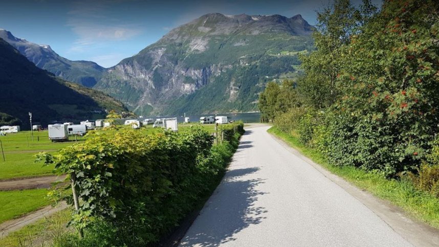 Situated in the centre of Geiranger, everything is within easy walking distance. Within a 5-minute walk, you'll find the tourist information centre, public transportation, post office, pubs, restaurants, and a grocery store. The town centre also hosts a charming art gallery, a mini-museum, and several souvenir and gift shops. The campsite is surrounded by towering mountains and cascading waterfalls, characteristic of the UNESCO World Heritage site.