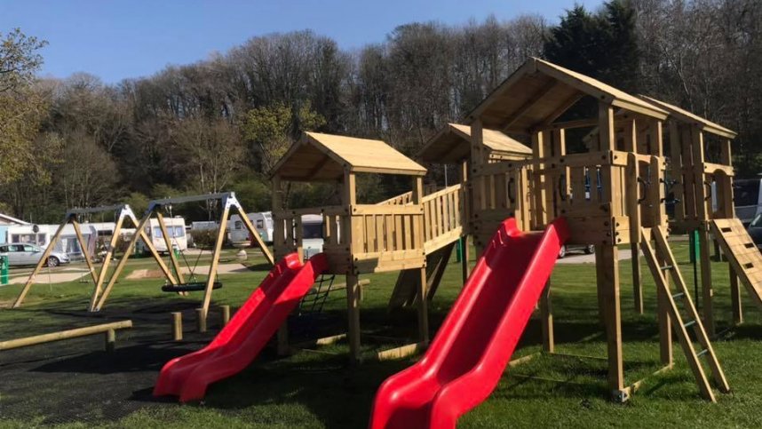 Glen Trothy is a pretty park on the banks of the River Trothy and visitors are greeted by an array of colourful flowerbeds and tubs around the entrance and reception area. Three fields provide level touring and tent pitches. The first and largest field has a circular gravel road with seasonal pitches arranged on the outer side and touring pitches on the inner side. These have slabs for vehicle wheels and electricity hook-ups. The second field, just past the toilet block, has pitches for trailer tents and tents only (16 with electricity), whilst the camping field is for tents only (no cars are allowed on this area).