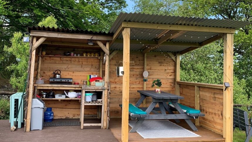 The site has hardstanding or grass pitches, with up to ten electric hook-ups available between the pitches. Pitches are well sheltered, and the site has views north of the Cambrian and Snowdonia Mountain ranges. The site has 20 grass and 20 hardstanding touring pitches with optional electric hook-up points. There are also three bell tents, a yurt, a gypsy caravan and a shepherd's hut available to hire.