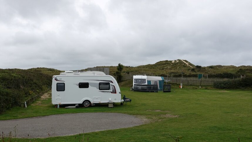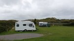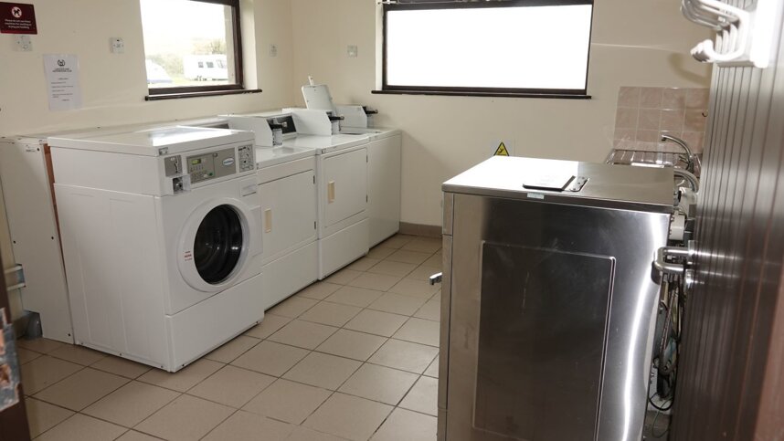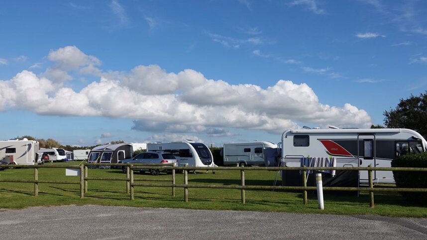 The single toilet block provides toilets, showers and wash basins. Accessible sanitary facilities. Wet suit shower. Laundry. Dish washing area. Motorhome service point. Chemical toilet point. Children’s play area. BBQs allowed, charcoal, gas and electric. TV reception good. Wi-Fi fair, charged. Defibrillator. Information room. Pets allowed. Dog walk adjacent. Twin axle caravans accepted. No late-night arrivals area. Earliest time of arrival 1:00pm. Maximum outfit length 9 metres. Bus stop 1200 metres. Train station 2 miles. Asda 3 miles.