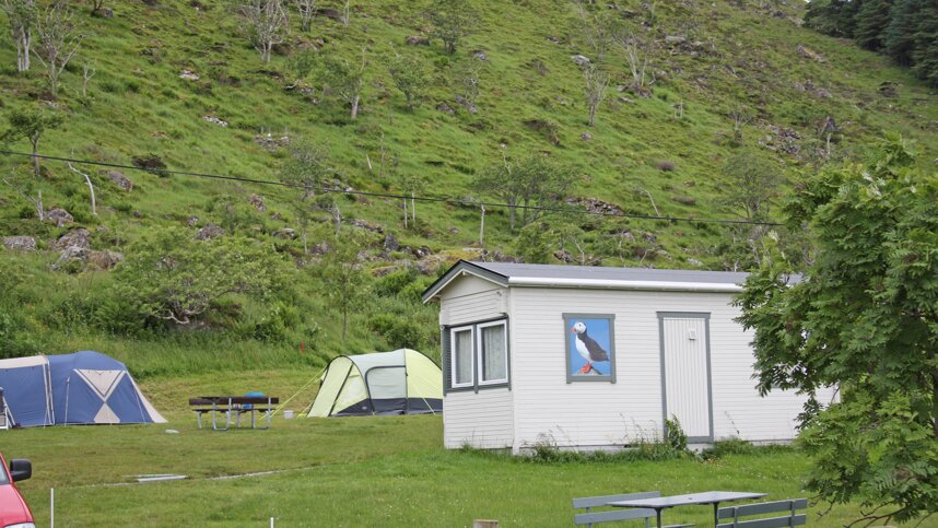 Goksøyr Camping has pitches for your own tent, caravan or motorhome. There are also cabins available to hire. The site is beautifully located by the sea and right by the natural starting point for trips across the island. The site owners have a long history as permanent residents of the island and have hosted visitors for generations. On site you will find a shop with a rich selection of food and drink, maps, books, souvenirs and other items that help to enhance the hiking experience.