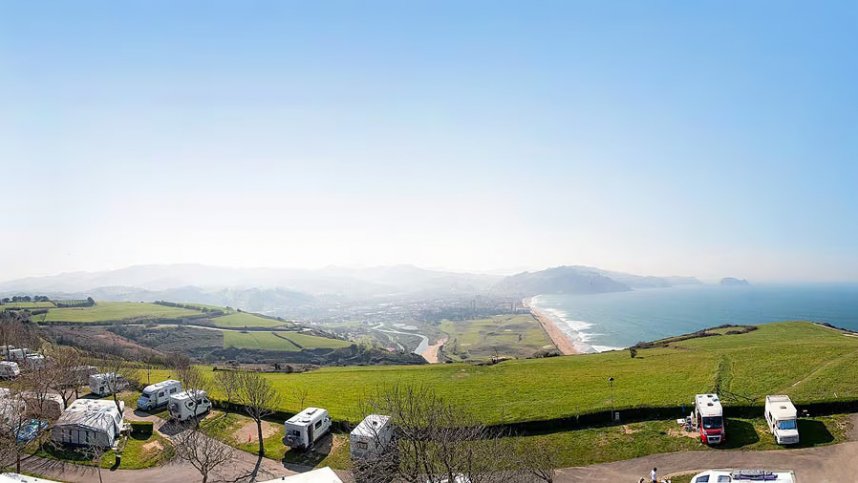 This friendly site sits high in the hills east of the Basque town of Zarautz and has commanding views over the bay and the island of Getaria. Of the 540 pitches, 450 are for touring units, with 6A electricity; ten also have water and drainage. The remaining pitches are for tents and seasonal caravans. The grass pitches are of average size, shaded by mature trees, and those on the perimeter have superb sea views.