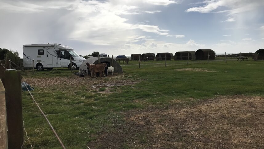 This is a small, family-run working farm, with many unusual, friendly animals including Alpacas, pigs, goats, pony, horse, water buffalo, donkey, poultry etc. and small pets. Level pitches (some with electricity) are available for tents, caravans, campers and motorhomes; hardstanding with water is also available. Those looking for accommodation rental options can choose from pods, mobile homes or cottages.
