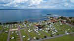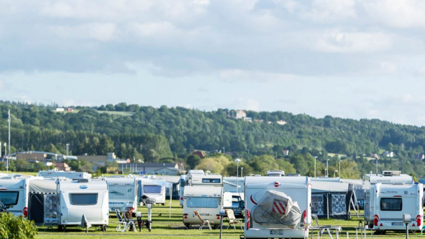 This large lakeside site, with modern facilities and a busy continental feel, is set below the old city of Gränna. Flat fields separate Gränna from the shore, one of which is occupied by the 25 acres of Grännastrandens where there are 450 numbered pitches including a tent area and some seasonal pitches. About 265 pitches have electricity (10/16A). The site is flat, spacious and very regularly laid out on open ground with only a row of poplars by the lake to provide shelter, so a windbreak may prove useful against any onshore breeze. Part of the lake is walled off to form an attractive swimming area with sandy beaches, slides and islands.