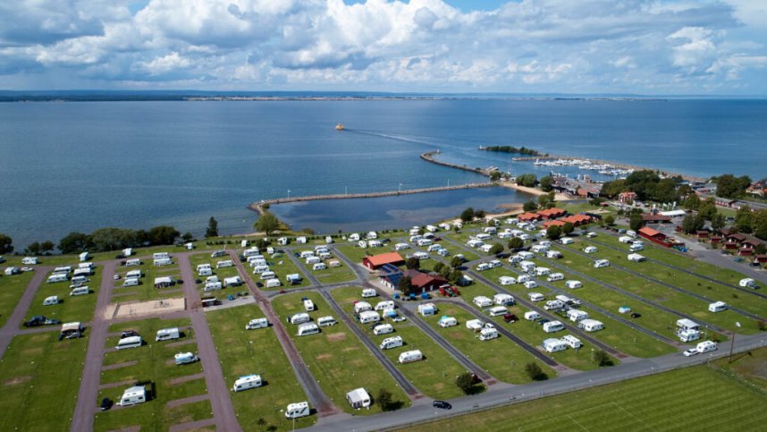 Take Gränna exit from E4 motorway (no camping sign) 40 km. north of Jönköping. Site is signed in the centre of the town, towards the harbour and ferry.