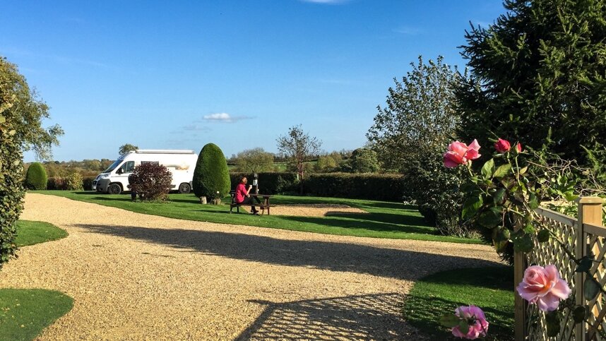 This is a delightful little adults only park set in rolling countryside, ideal for those seeking peace and tranquillity. It is very eco-friendly and extremely well appointed for such a small site. There are only 12 pitches, four of which are suitable for tents, so it is worth checking availability. All have 10/16A Europlug, gravelled hardstanding and there are plenty of water points. Lawns are immaculately tended, while flower beds, shrubs and wild flower planting add to the appeal of the site. Birds and other wildlife are encouraged. Up to 80 species of birds have been seen at Greendale. The solar heated small swimming pool is available in summer.