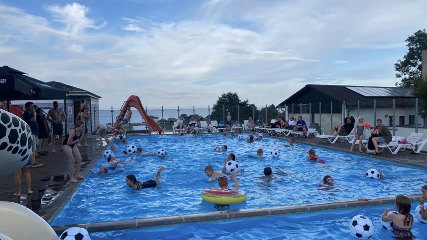 Four excellent blocks include British style toilets, cabins with toilet/basin and/or shower and controllable hot showers (card operated). Child size toilet, basin, shower. Baby room. Laundry. Campers’ kitchen. Motorhome services. Shop (24/3-11/9). Outdoor pool (heated 15/5-31/8, 8x15 m) with large slide and paddling pool. Sauna and solarium. Playground. Minigolf. Fishing. Watersports. TV room with arcade machines. WiFi over site (charged). English is spoken.