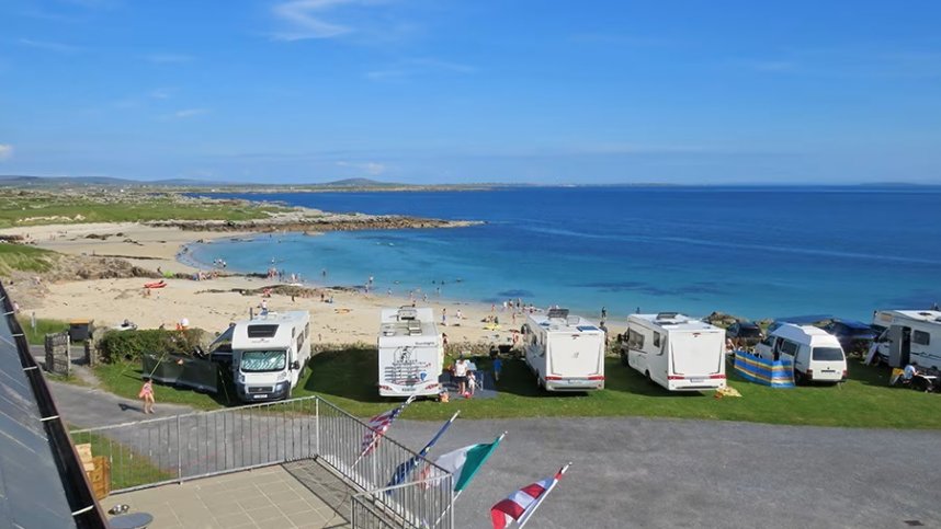 From Galway take the N59 west towards Clifden. Then left to Cashel (R340) and right onto the R342 following signs to Roundstone. Go through village and the park is 2 km. on the left (use the second entrance, the first is too narrow for touring units).