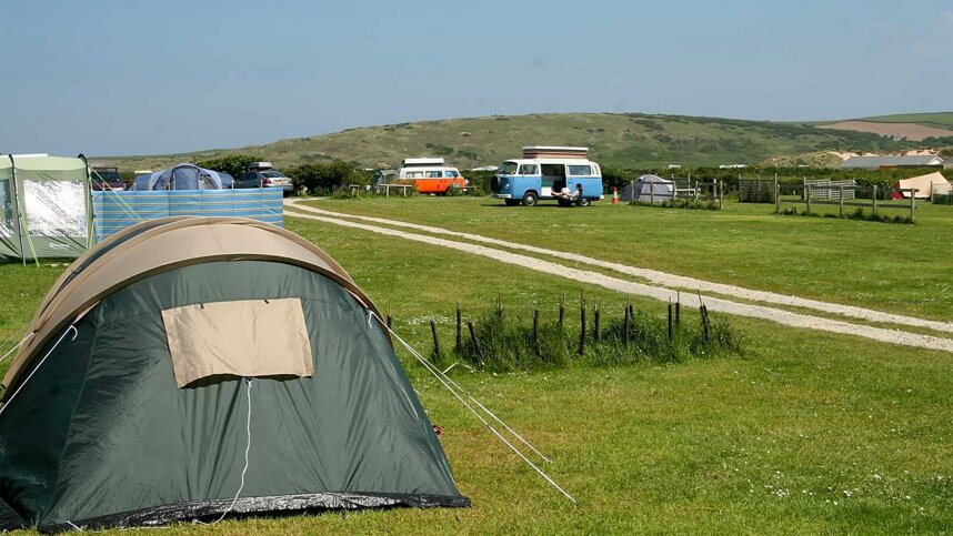 Gwithian Farm Campsite and Caravan Park is an outstanding, friendly family run campsite in West Cornwall, near St Ives. The site is in the centre of Gwithian village, opposite the Red River Inn and just 10 minutes’ walk from 3 miles of sandy beach, perfect to explore Cornwall. Gwithian beach by Godrevy is renowned for safe bathing, great surfing and long stretches of dog friendly beach. The site is set in beautiful, landscaped gardens behind a 16th century thatched farmhouse. Access to the beach and coastal path is from the top of the campsite, through the sand dunes. The site accepts caravans, motor homes, tents, trailer tents and camper vans and has hard standing pitches at no extra cost. There are 60 grass or hardstanding pitches and most have electric hook-up facility.