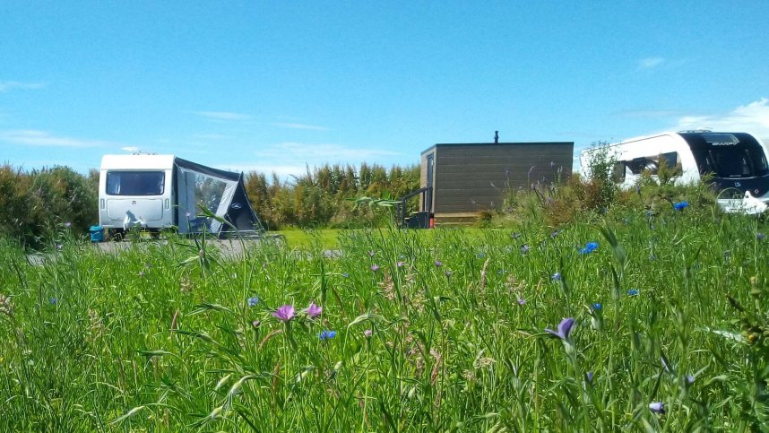 Hallsdown Farm Touring Park is an adult only site that does not allow dogs or tents. It is a working sheep farm, lambing in spring. At other times of year there is always something to see, and our pet goats, pigs, ducks, alpaca and donkey will do their best to amuse you. If you would prefer to walk directly from the site a short walking distance will take you to the Wistlandpound Reservoir offering woodland walks, cycling and activity trails for all to enjoy. Trout fishing and bird watching are also available. It is also possible to access the National Trust Arlington Court estate offering walking for all abilities. The site has 30 touring pitches all with 16amp hook-up point 6 are grass, 19 hardstanding and 5 fully serviced pitches with 16amp EHU, individual tap, grey waste drain and individual toilet facility. The site is a member of the Tranquil Sites Group.