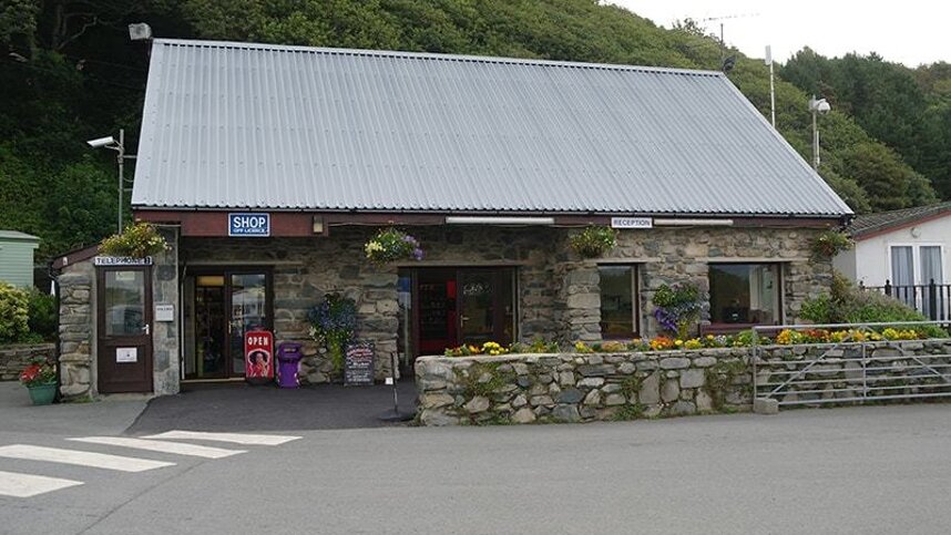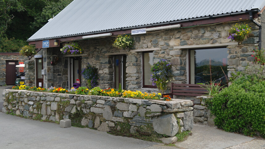 Park is off the A496 road north of Barmouth. Entrance is on left down a steep drive.