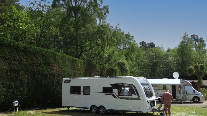 It is a family orientated site, owned by its members and is open all year, but the camping season only runs from April to October. Tents are pitched within small glades around the grounds and there are 12 level grass pitches for caravans, motorhomes and trailer tents, a short walk from the pool area and clubhouse. All pitches have electricity. Visitors are welcome. Dogs, photography and the wearing of body jewellery are not permitted.