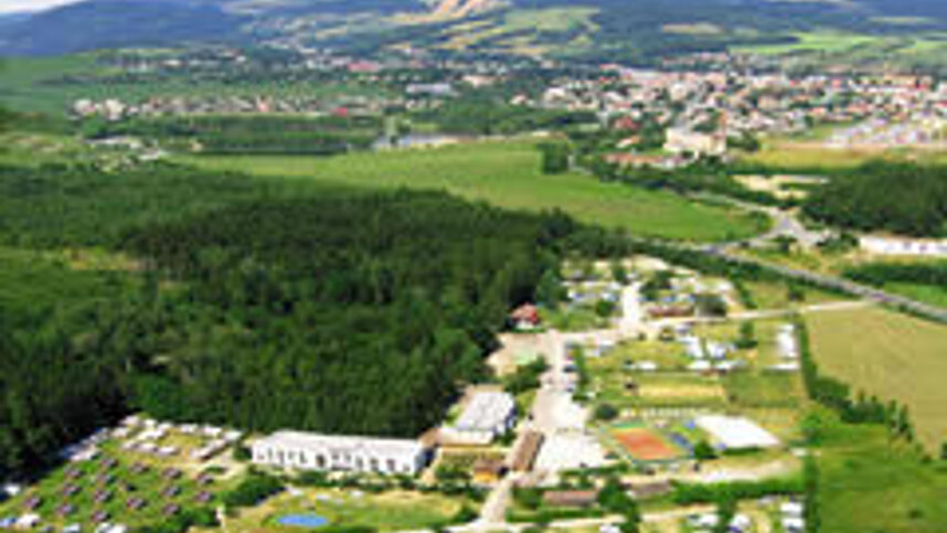Two dated but serviceable sanitary blocks near the entrance and another block next to the hotel include toilets, washbasins and spacious, controllable showers (on payment). Child size toilets and baby room. Accessible facilities. Sauna and massage. Launderette with sinks, hot water and a washing machine. Shop (15/6-15/9). Bar/snack bar with pool table. Games room. Swimming pool (6x12 m). Adventure-style playground on grass with climbing wall. Trampolines. Tennis. Minigolf. Archery. Russian bowling. Paragliding. Rock climbing. Bicycle hire. Entertainment programme. Excursions to Prague.