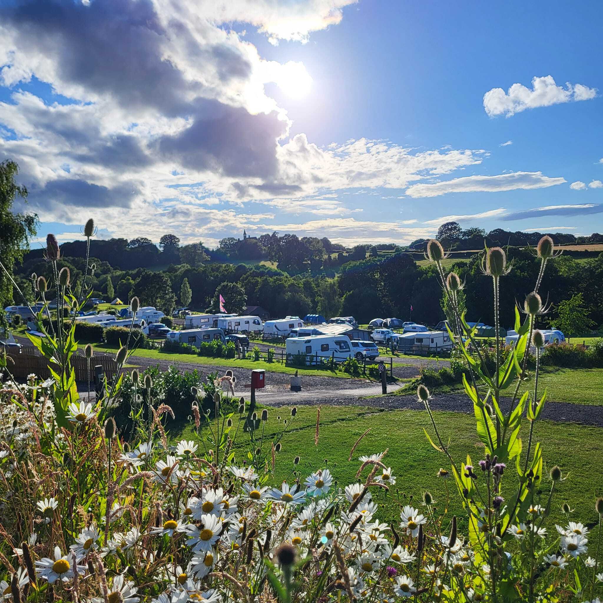 Hopleys Family Camping is a well-established site located on the outskirts of the Georgian town of Bewdley. Set on a converted farm, the site is known for its tiered, hillside layout that offers expansive views of the Severn Valley and the Wyre Forest. The site has 100 pitches 52 with electric hook-up point, 30 for caravans, motorhomes and camper vans 11 of which are hardstanding. 7 serviced pitches and 70 for tents. Earliest arrival time 1.00pm. Electricity is provided on a pay-as-you-go meter system on your pitch. Because the site is on a hillside, many pitches are sloping. It is highly recommended to bring levelling ramps for motorhomes or caravans.