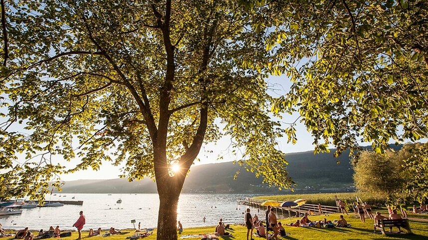 Hotel Camping Sutz am Bielersee has a variety of pitches suitable for caravans and motorhomes and idyllic meadows which are just right for camping. Over twenty of the pitches are more than10m long, making it a perfect choice for owners of longer motorhomes. The pitches drain well, so if there is a downpour, you'll be sure to stay dry. Electricity, water and sewerage hookups are available. A small playground for younger campers can be found in the touring meadow; this also features a chessboard for older guests. There is also a large playing field and barefoot nature trail on-site.