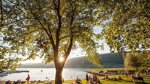 The touring meadow is about a three-minute walk to the lakeshore. The large lakeside lawn is the perfect sunbathing spot, but if you prefer to be a little more active there is also a playground and beach volleyball court available. Cold drinks and ice cream are available from the campsite shop/restaurant which is located next to the sunbathing lawn. Bike hire is available on site and fishing and boat launching facilities can both be found nearby.