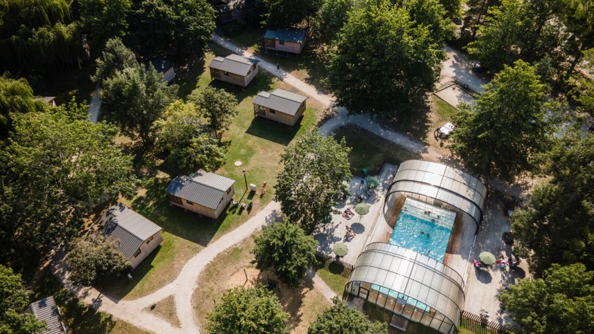 Huttopia les Châteaux is a well situated, wooded site on the outskirts of the small town of Bracieux, and convenient for many of the best known châteaux of the Loire valley. There are 350 pitches, 282 of which are reserved for touring. Some are grouped in blocks of four between hedges, and all have access to 6/10A electricity. Mature trees provide shade throughout most of the site. Rental accommodation includes mobile homes, chalets, Romany-style caravans and wood and canvas tents. A heated swimming pool was added in 2015.