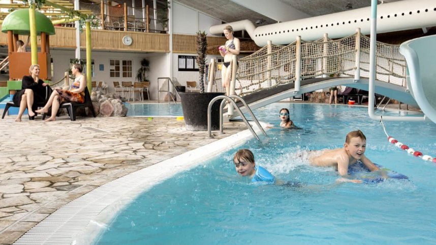 Five superb toilet units include washbasins, roomy showers, spa baths, suites with accessible facilities, family bathrooms, kitchens and laundry facilities. Bathroom for children decorated with dinosaurs and Disney characters, and racing car baby baths. Motorhome services. Supermarket. Café/restaurant. TV rooms. Pool complex, solarium and sauna. Wellness facility. Western-themed indoor play hall. Play areas. Supervised play rooms (09.00-16.00 daily). Barbecue areas. Minigolf. Riding (Western style). Fishing. Dog showers. ATM machine. Free WiFi.
