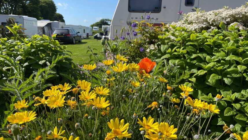 The park is in a peaceful spot, surrounded by rural scenery and quiet lanes which make for a lovely stroll with the dog. Access for tourers is easy and the park sits on two acres of grassland, divided by well-kept hedgerows which offer shelter. All pitches on both grass and hardstanding offer electric (some seasonal). Some are hardstanding super pitches.