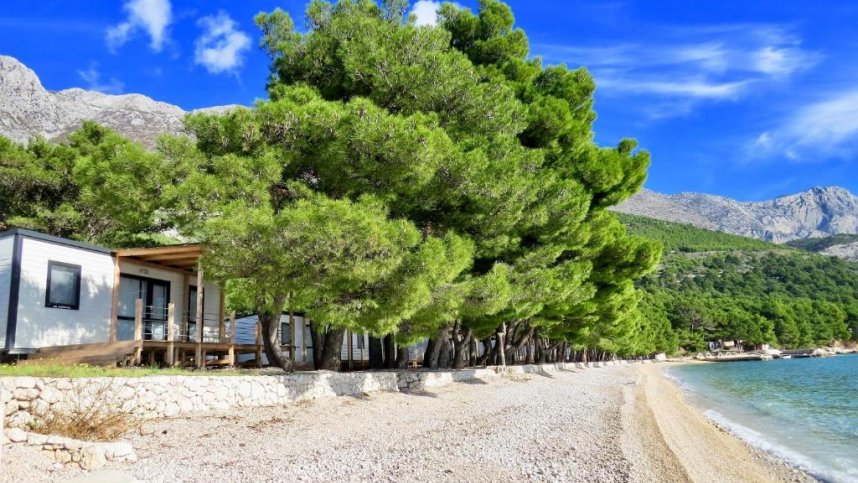 Kamp Dole is a spacious site with a long beach frontage in southern Croatia, close to the beautiful island of Hvar. It has 500 pitches, 400 are for touring units (10A electricity). The beachside pitches are numbered and marked, the remainder are used informally and are mostly in the shade of mature trees. There are great views of the sea from the pebble beach which stretches 500 m. in front of the site; at each end of the beach is a small harbour, palm-lined to the northwest, and a restaurant. The pitches at the back have beautiful views of the impressive mountains. Close to reception is a welcoming bar with terrace.