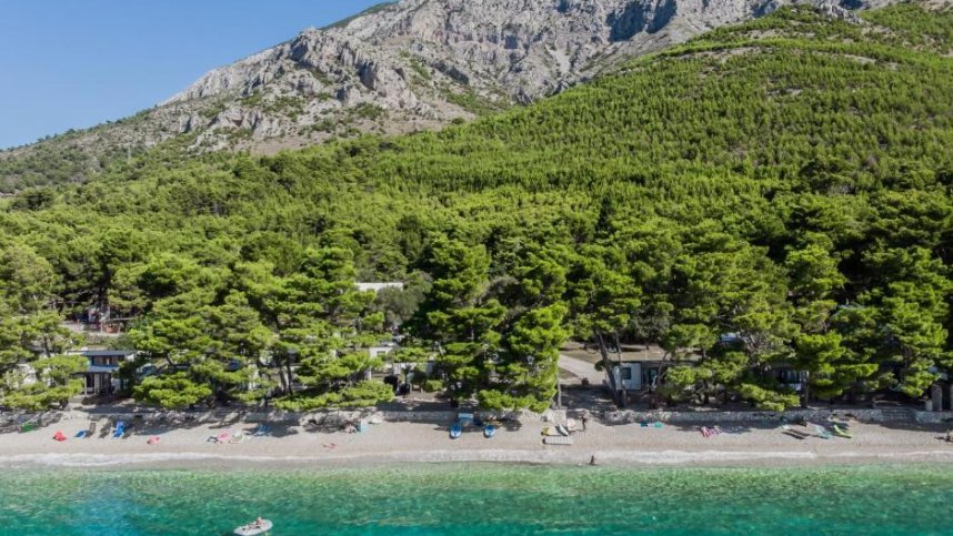 Four old but well maintained toilet blocks offer high quality British WCs, washbasins and controllable, hot showers (free). Fridge box hire. Several kiosks and supermarket. Bar. Jet ski hire. Paragliding. Pedalo and canoe hire. Full entertainment programme in high season. Excursions to Korcula. Barbecues only in communal area. Pets allowed.