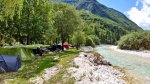 With an attractive location surrounded by mountains in the Triglav National Park, Kamp Klin is next to the confluence of the Soca and Lepenca rivers, which makes it an ideal base for fishing, kayaking and rafting. The campsite has 100 pitches all for tourers, 50 with 16A electricity, on one large, grassy field, connected by a circular, gravel access road. It is attractively landscaped with flowers and young trees, which provide some shade. Some pitches are right on the bank of the river (unfenced) and there are beautiful views of the river and the mountains.
