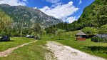 Site is on the main Kranjska Gora-Bovec road and is well signed 3 km. east of Soca. Access is via a sharp right turn from the main road and over a small bridge and right again. The road is winding in places with a moderate descent. GPS use co-ordinates.