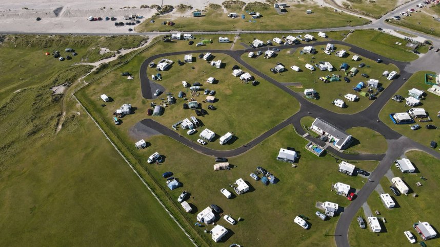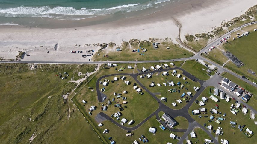 Two modern toilet blocks serve the site, one at the entrance gate beside reception and the other in a central position. Heated facilities include WCs, washbasins and hot showers (payment required). Hairdryers. Laundry with irons and ironing boards. En-suite accessible facilities at the reception block. Campers’ kitchen and dining room. Motorhome services. Play area. TV/games room. Watersports enthusiasts can enjoy kite surfing, canoeing and board sailing on Keel Strand and Lough. Fishing trips can be arranged. WiFi throughout (charged).