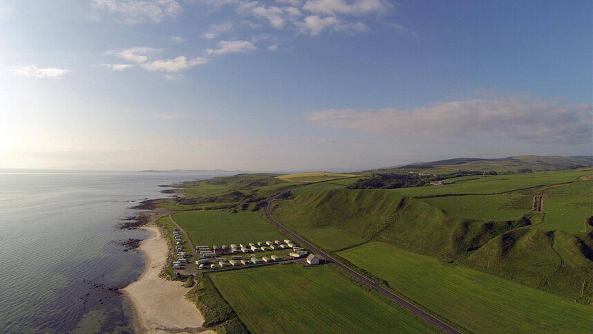There are 55 pitches of which 35, on grass or hardstanding, are for touring units with electric hook-up point 16amp. A mobile home is also available to hire. Excellent stopover en route to Arran, Ardrossan or Islay from Kintyre. Nearby facilities include village shop, post office, garden centre and cafe, public house and restaurant. Please note this site is not suitable for lightweight tents, strong pegs recommended.