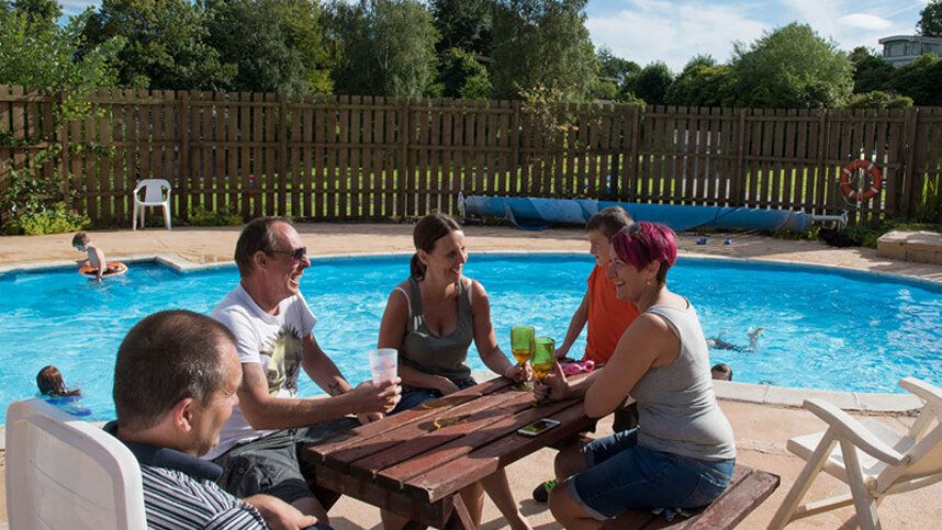 Kippford View Holiday Park is situated on a hillside overlooking the Urr Estuary on the Solway Coast close to Dalbeattie and Castle Douglas, with the small village of Palnackie being a short walk away. Set on terraces, level, marked and numbered, most of the touring and tent pitches are on grass with a limited number of hardstandings available. There are 16 with 16A electrical connections. In addition, there are two hikers’ pods and around 60 holiday homes (with eight available for hire) are positioned on terraces high above the touring areas and screened by mature shrubs and trees. Just to the left of the entrance, there is a minigolf course and an adventure play area screened from the park with mature trees. The small sheltered outdoor swimming pool is popular.