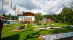 Three sanitary buildings are good quality, with some washbasins in cabins and underfloor heating. Baby room. Accessible facilities, Laundry. Gas supplies. Motorhome services. Cooking facilities. Dishwashing by EasyBe. Supermarket (Seasonal). Restaurant/bar (Seasonal). Hairdressing salon. General room for young. Caravan shop. Heated indoor pool (free) with a child’s pool, sauna and fitness room, and an outdoor spring water pool. Small lake (ice sports in winter). Fishing. Bowling. Mini golf, Football, Archery, Church. Organised activities (July/Aug. and Xmas). Ski hire. Dog-free area.