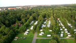 It is unusual to find a good site in a city, but this large, neat and tidy site is one. It is far enough away from roads and the airport to be reasonably peaceful during the day and quiet overnight, and has 157 touring pitches. It is set in a mainly open area with tall trees and attractive flower beds, with some chalets and ‘trekker’ cabins to rent in the adjoining woodland, home to shoe-stealing foxes. The individual, numbered, flat grassy pitches are large (at least 100 sq.m), all with 16A electricity and five on hardstanding, arranged in several sections.