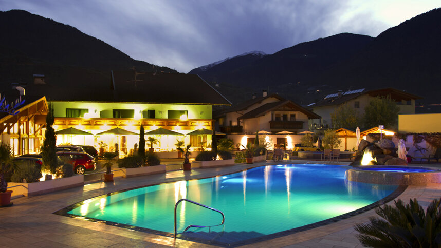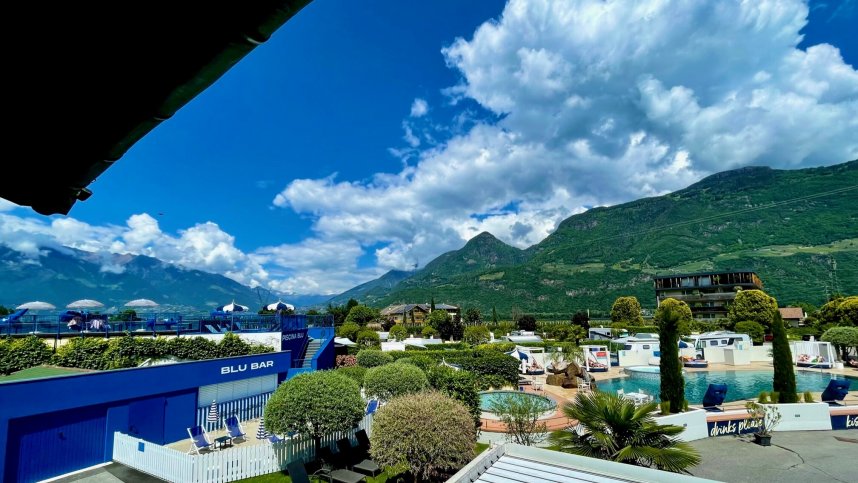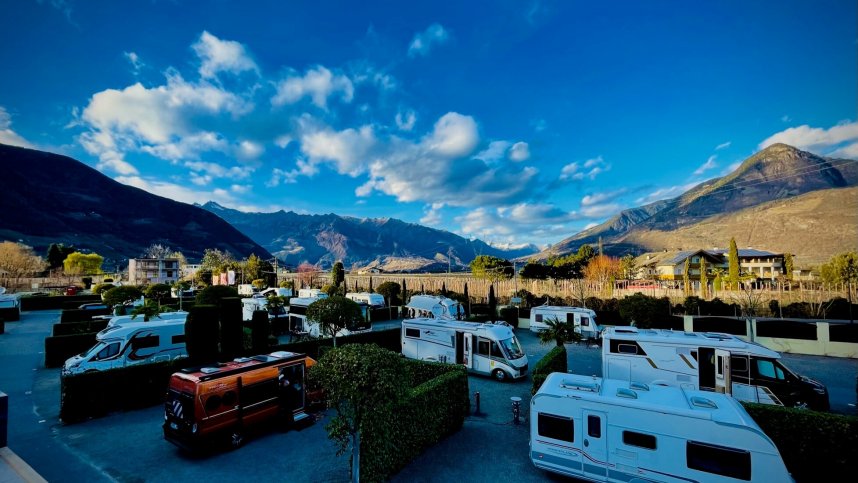 Komfortcamping Schlosshof is a hotel with its own campsite of 134 pitches. The site is open from March to mid November and offers hotel standard facilities with the aim of making your stay special. The level touring pitches are between 80-130 sq.m. on either shale or grass, all with 16A electricity and many are fully serviced. The site is close to Lana, one of the largest villages in the South Tirol and famous for its Mediterranean climate. This is a German-speaking area of Italy and a good base for active families wishing to explore this region of natural beauty.