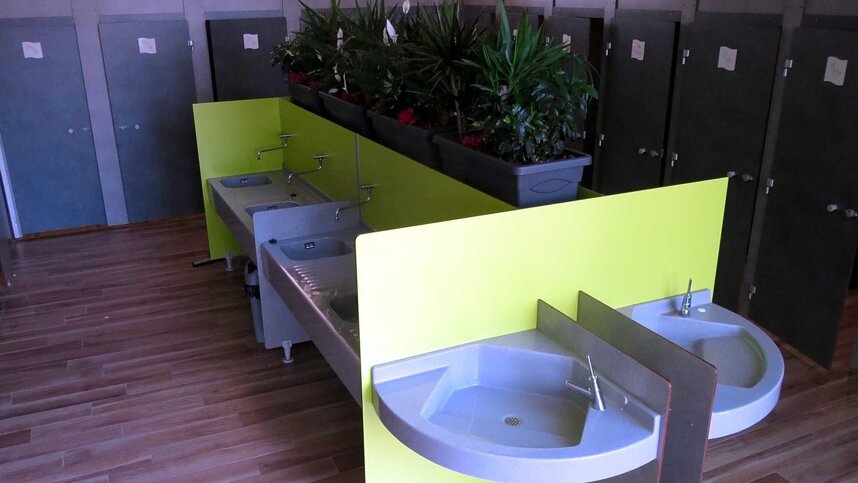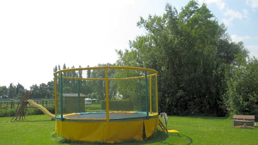 A small toilet block provides showers, washbasins & WC’s. Accessible facilities. Children’s bath. Chemical toilet point. Play area. Trampoline. Dogs allowed. Late-night arrivals area. BBQ’s allowed gas, charcoal & electric. Wi-Fi free. Boules pitch.