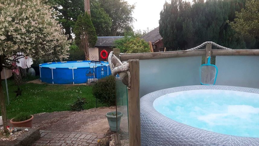 Eco-friendly composting toilets, solar showers, fresh and non-potable water, WIFI, BBQ's allowed, Above ground outdoor pool, Hot tub.