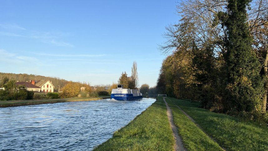 From Paris on the A6 take exit 16 and join the 403 towards Nemours. At a roundabout take the 4th exit to join the D40. Turn left onto Rue de l'Écluse to cross the canal bridge. Bear left onto Chemin des Pâtures. Turn left onto Chemin des Grèves and the site is on the right off this road.