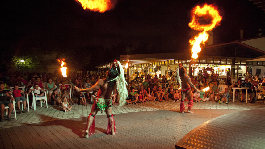 One bright and clean sanitary block provides very reasonable facilities including controllable showers and open style washbasins. Accessible Unit. Motorhome services. Supermarket (June-Sept). Various vending machines. Self-service restaurant and bar with takeaway. Extensive new leisure pool complex. Children’s club, entertainment (both June-Sept). Playground. Multisports and short tennis courts. Medical service daily in season. ATM point. Torches may be required. WiFi throughout.