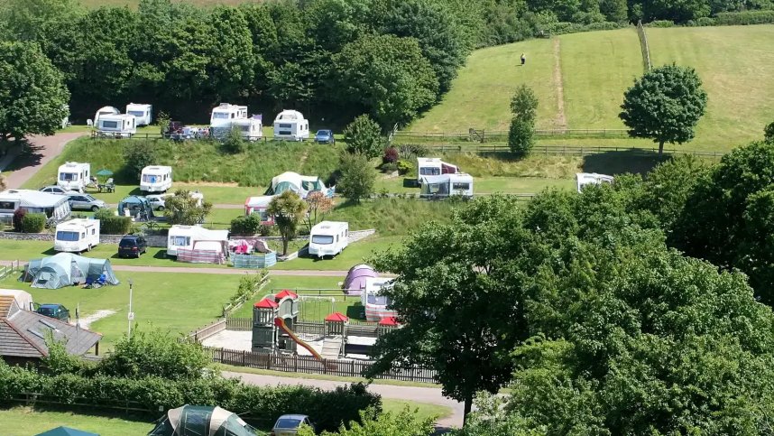 Lady’s Mile is a popular, large family touring park, open all year and great for children. It has extensive grassy fields with some shade and a landscaped camping area, partly arranged on terraces. There are 550 good sized pitches (450 for touring) all with 10A electricity, and 59 fully serviced on hardstandings. You can walk to Dawlish (ten minutes) and to the sandy beaches at Dawlish Warren (20 minutes). The park also has a good sized, free outdoor swimming pool with a long slide and splash zone, a paddling pool and a super heated indoor pool with flume and separate paddling pool.