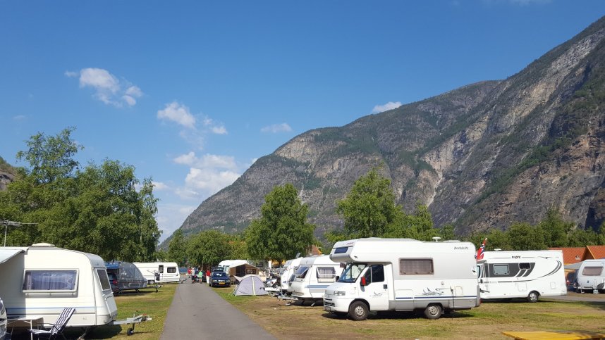 This site is beside the famous Sognefjord, the longest fjord in the world. It is ideally situated if you want to explore the region's glaciers, fjords and waterfalls. The 100 pitches (all with 16A electricity) are level with well-trimmed grass, connected by tarmac roads are suitable for tents, caravans and motorhomes.