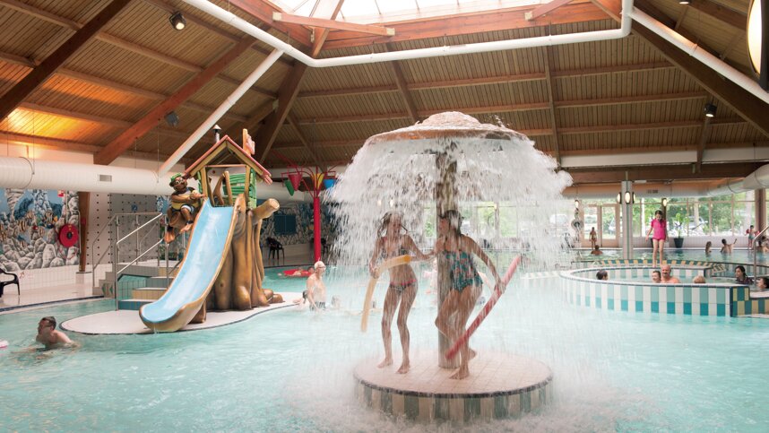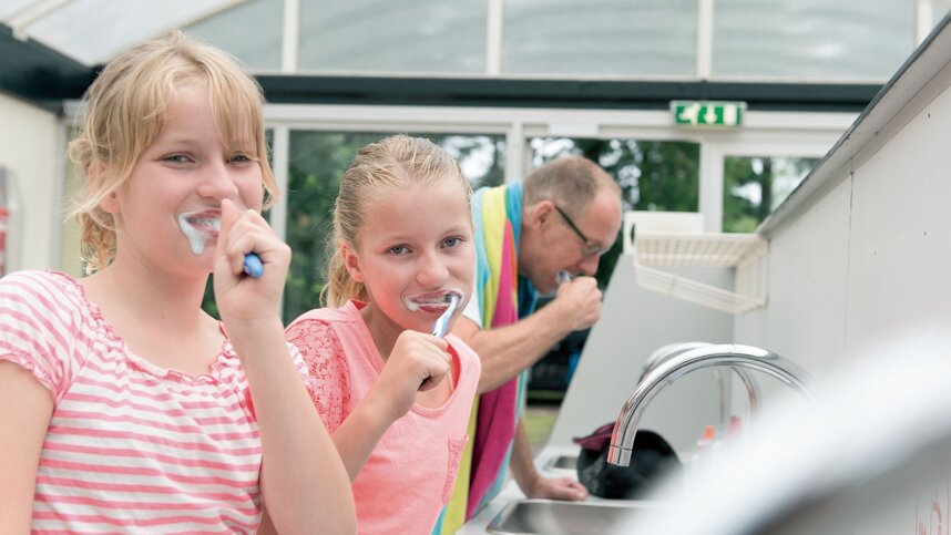 Two modern, heated sanitary blocks are clean and central to the touring fields. Free controllable hot showers and some washbasins in cabins. Large family room. Accessible Facilities. Washing machines and dryers. Motorhome services. Well stocked shop (fresh bread and milk daily) and café/restaurant/takeaway (all year). Indoor (all year) and outdoor (1/5-30/9) swimming pool complex. Indoor and outdoor playgrounds. Sports pitch. Mobile homes and chalets to rent. Dogs are accepted. Bicycle hire. WiFi (charged).