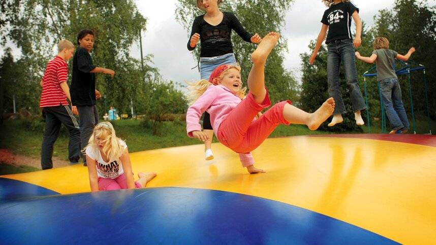 Three toilet blocks of very good quality provide washbasins (many in private cabins) and an accessible unit. Family shower room. Large launderette by reception. Motorhome services. Gas supplies. Shop. Bar. Restaurant and takeaway, games rooms adjacent. Disco. Swimming pool (all year). Climbing wall. Minigolf. Large playground. Football field. Volleyball. Basketball. Entertainment in season for all ages. WiFi over site (charged).