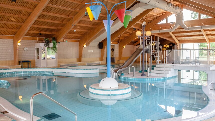There are plenty of games facilities here, a restaurant, large shop and a magnificent, brand new heated indoor swimming pool complex, close to a large area of play equipment on sand.