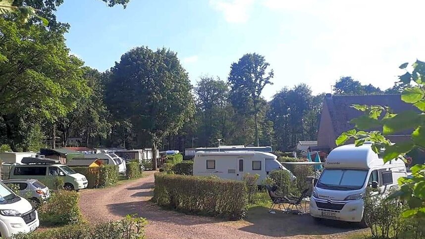 The campsite has 49 touring pitches with plenty of shade from the trees when it gets warm. The fully serviced pitches here have water and electricity points and access to a launderette and 24-hour bathrooms. You can find a heated swimming pool, an on-site playground, and an outdoor fitness area. There are options for food with a café/takeaway, drinks from the bar or meals made from the grocery shop and bread point. Evening entertainment runs in summer, including friendly, themed meals.